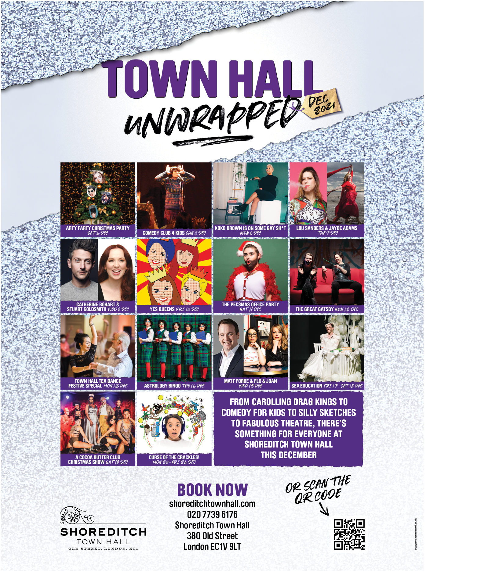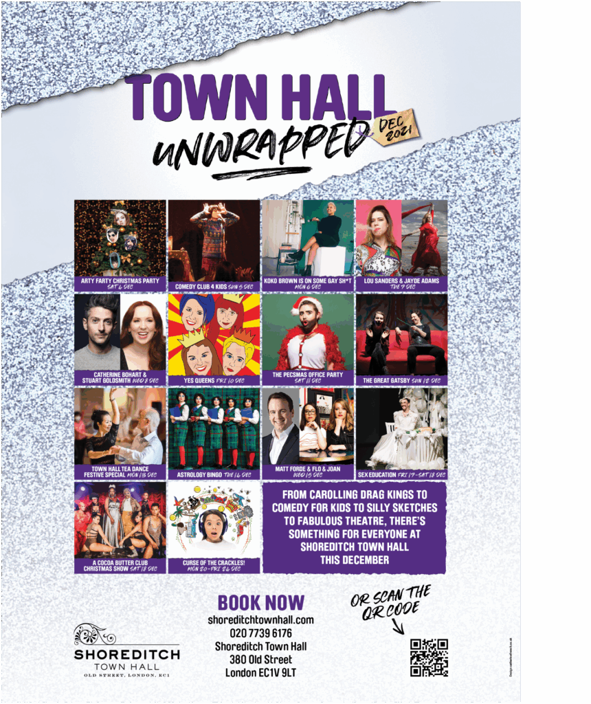 New season branding and graphics including animation for use on social media for the festive period 2021 at Shoreditch Town Hall.